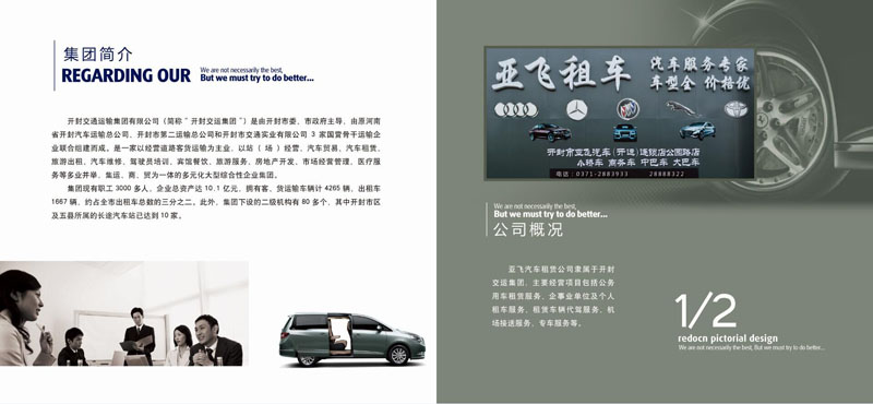 開(kāi)封交運(yùn)集團(tuán)所屬開(kāi)封市亞飛汽車(開(kāi)運(yùn))連鎖店汽車租賃業(yè)務(wù)正式運(yùn)營(yíng),開(kāi)封亞飛汽車租賃具有車輛多,車型全。服務(wù)好、價(jià)格低、駕駛員專業(yè)素質(zhì)過(guò)硬等特點(diǎn),竭誠(chéng)為政府機(jī)關(guān),企事業(yè)單位公務(wù)出行提供規(guī)范化的使用方案,并為個(gè)體客服提供最合理的租車方式和最優(yōu)的用車出行服務(wù),日租價(jià)格最低99元起,包月2000元起。為滿足客戶多樣化需求,開(kāi)封交運(yùn)集團(tuán)亞飛汽車租賃可根據(jù)客戶不同用車需要,及時(shí)采購(gòu)不同類型車輛,確?蛻羧虩o(wú)憂。